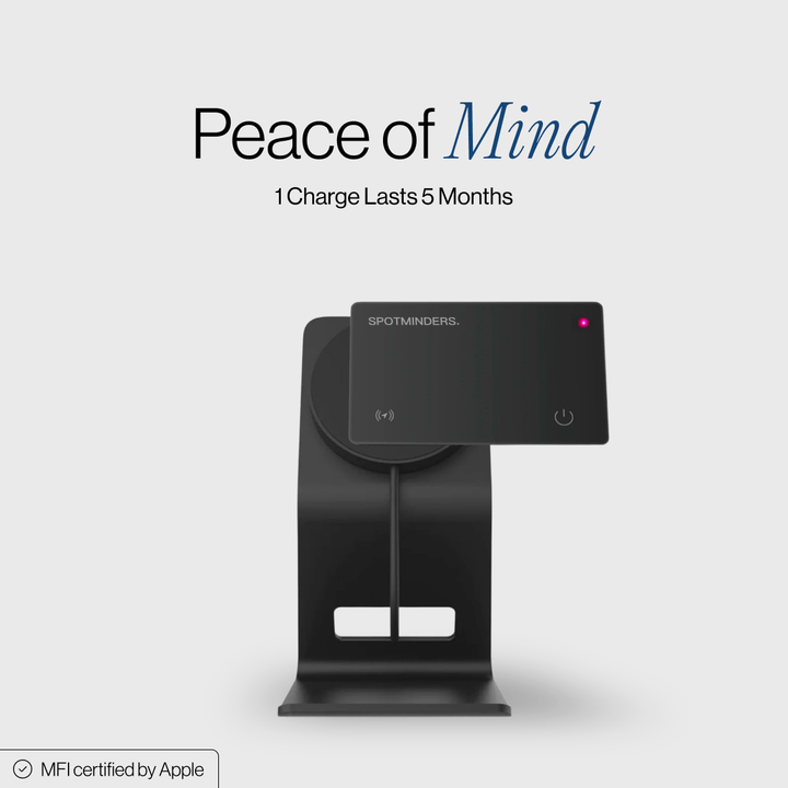 Yes, the Spotminders Tracking Card features wireless charging capability for your convenience. Simply place it on a compatible charging pad to recharge when needed. A full charge lasts up to 5 months, indicated by a color-changing LED light. Reusable multiple times, more economical.